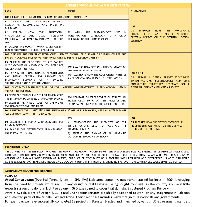 LO1 Explain the terminology used in construction technology. Pearson BTEC Level 3 Nationals CF specification in Construction and the Built Environment Issue 2 uly 2020 Pearson Education Limited 2020. Describing construction methods and techniques employed to construct all superstructure elements.